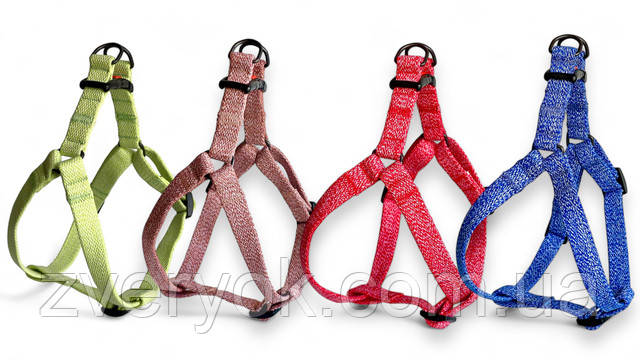 Шлея для собаки виготовлена з високоякісної брезентової стропи. Високоміцна стрічка, з якої виготовлена шлейка, не втрачає колір під час прання і не вигоряє на сонці. Ця шлейка м'яка на дотик і гнучка. Вона практична та невибаглива у догляді.